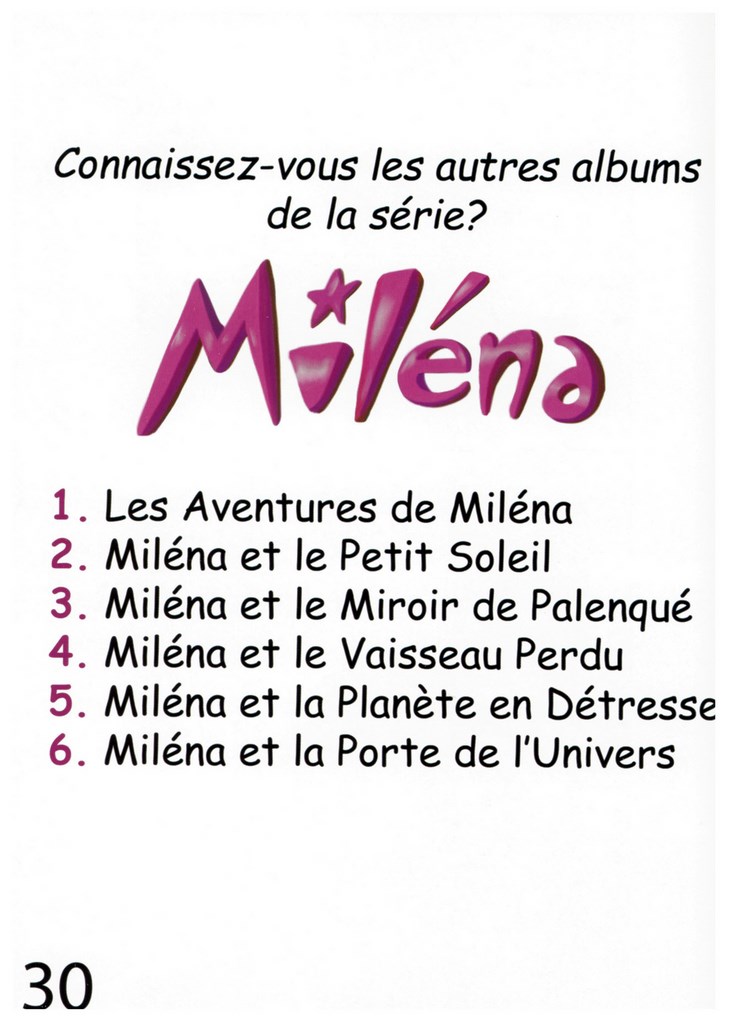 Miléna, petite fille extraterrestre, accompagnée de son ami Julien et du chien-robot R.T.A, vit des aventures extraordinaires au plus grand plaisir des petits (5 à 10 ans) et des grands.